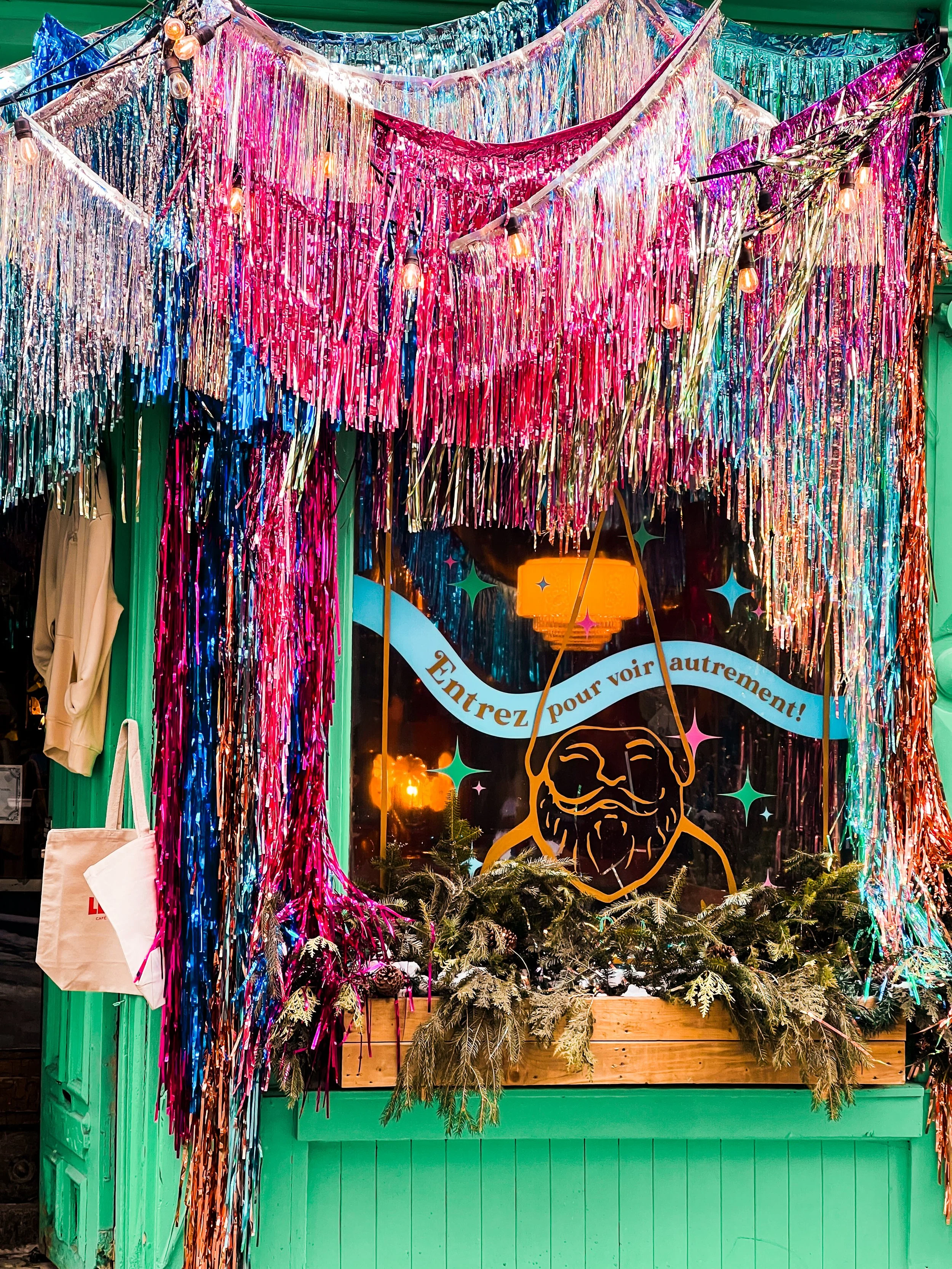 Des milliers de franges scintillantes, comme une aurore boréale passagère, vous transportent dans cette installation temporaire, scénographiée par notre équipe de créateurs de @latavernedenoel et @lemuseeimaginarium. Pas étonnant qu’ils nous fassent vivre, encore une fois, une expérience immersive et magique.